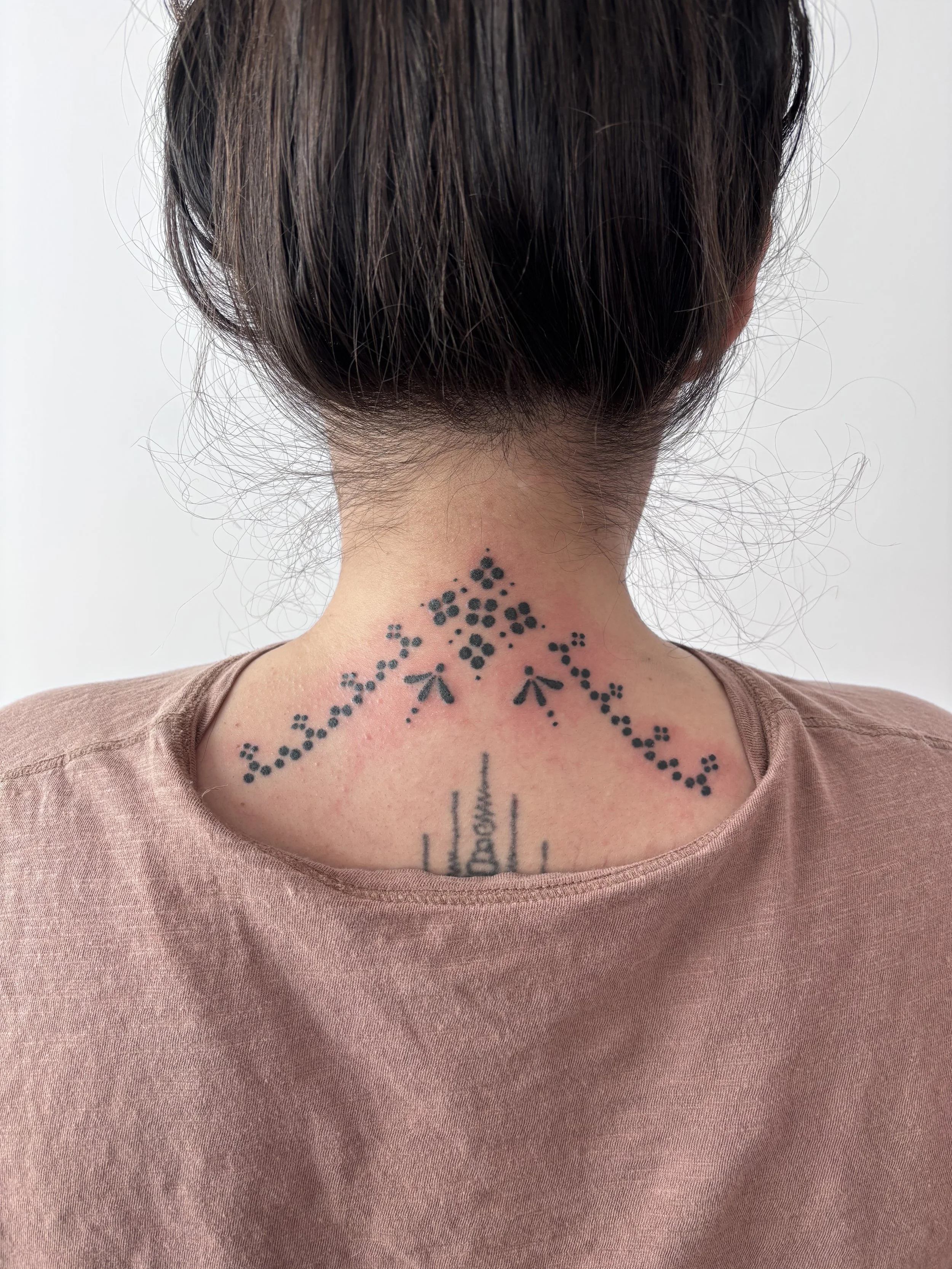 This session is for 3 hours total. This is typically enough time for a large/custom tattoo (designs's larger than 6" or on complicated areas like sternum, collarbone, spine, or abdomen). This also includes traditional markings.